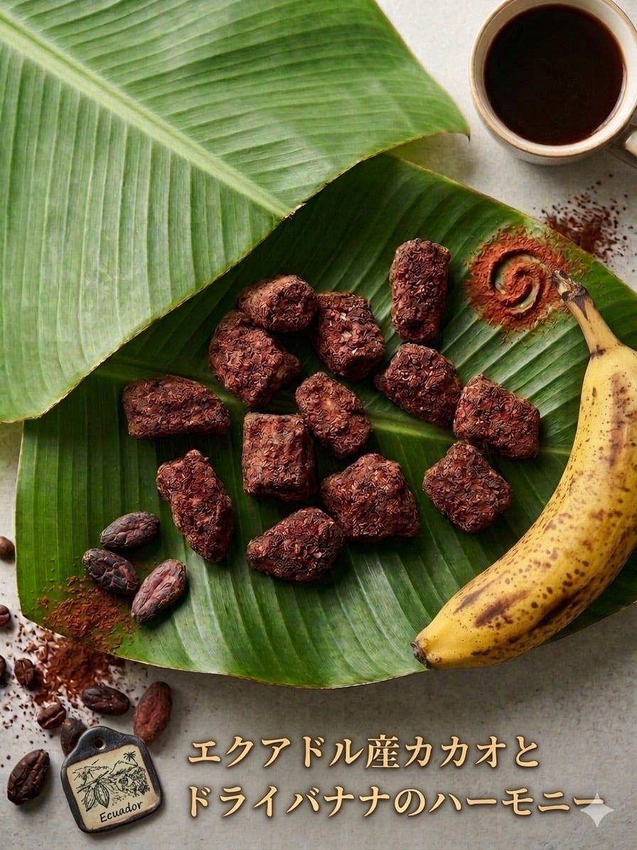 バナナの甘み・ビタミンB2×高カカオの旨味・テオブロミンの黄金比をお届けします。